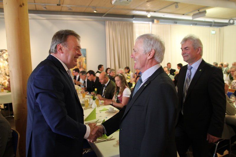 „Wenn der Sepp noch einmal ruft, ja dann kommen sie alle“, so begrüßte der neue Präsident Adi Schapfl neben dem derzeitigen Staatsminister Helmut Brunner auch dessen Vorgänger im Amt Josef Miller. Zwei Minister in Wolnzach, das zumindest zeigt schon, welchen Stellenwert der ehemalige Vorsitzende des Hallertauer Hopfenpflanzerverbandes hat.