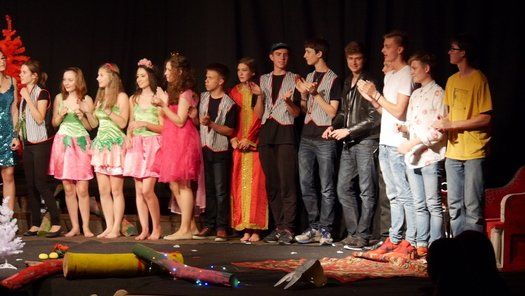 Über 30 junge Schauspieler und Techniker bringen ein farbenfrohes und relativ schnelles Stück auf die Bühne. Der Nachwuchs braucht sich nicht verstecken, die Texte und Auftritte sitzen, die Einsätze, das Licht, der Ton, alles vom Feinsten. Das Publikum hat nicht mit Applaus gespart und die FachlehrInnen waren entspannt und dankbar.