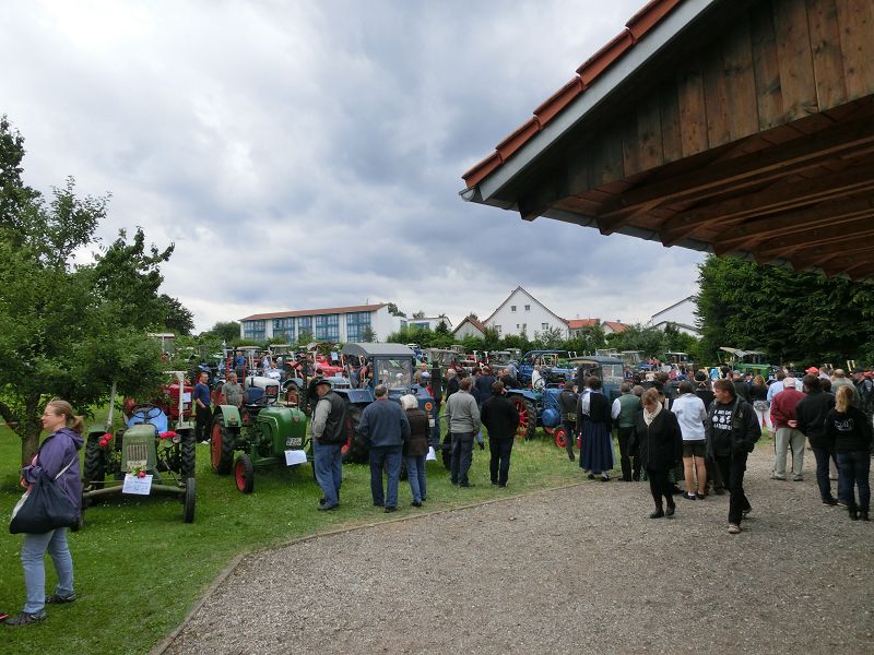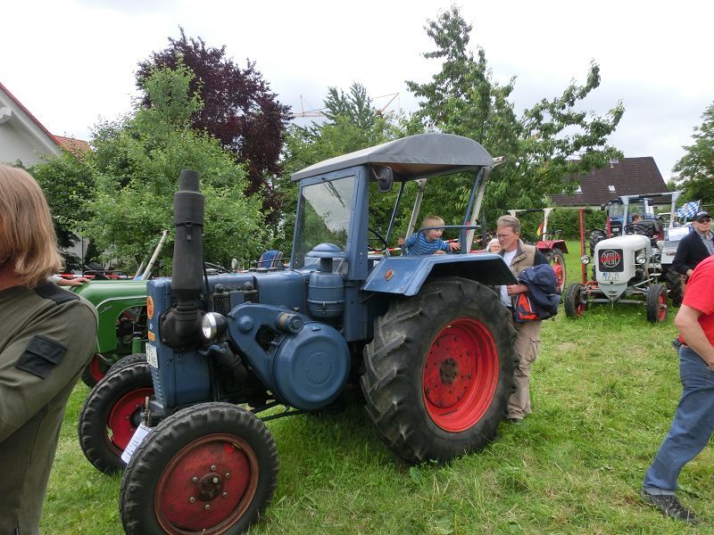 Zahlreiche Besucher bestaunten die liebevoll herausgebrachten Fahrzeuge, vor allem die Traktoren waren dicht umlagert. Alte Lanz oder Hanomag, einige aus den 50er Jahren, wechselten sich ab mit neueren Modellen, die teils heute noch im Gebrauch sind.