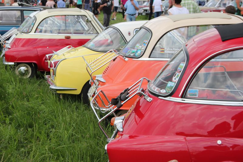 Auch Automarken, die die heutige Jugend gar nicht mehr kennt oder die Elterngeneration schon vergessen hat, wurden den Besuchern präsentiert. Das Goggomobil etwa, der Lloyd, Borgward oder NSU Prinz. Naturgemäß große Aufmerksamkeit konnten die Sportwagen erzielen, so neben den noch am ehesten aus dem Straßenbild gewohnten Porsche-Modellen auch ein Lotus und ganz besonders ein originaler Jaguar E Type.