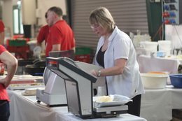 Petrus‘ Richtspruch folgend bestückte man am Samstag nicht den Marienplatz, sondern die Volksfesthalle mit Sitzgelegenheiten und ließ die kurzen Schauer auf Autos, nicht auf unbeschirmte Häupter regnen. Verliert das eigentlich sommerliche Fest dadurch vielleicht ein bisschen Charme, konnten sich aber so deutlich mehr Gäste einfinden und füllten die Halle restplatzlos. Wer sich einen Unterbau schaffen wollte, deckte sich zunächst und zwischendurch mit bayrischer Brotzeit und unsagbar gutem Käse vom Team Kramer ein.