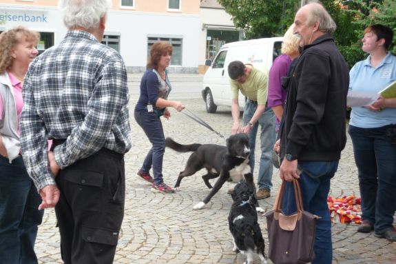 Die Hundeschule Holledau stiftet schriftliche Informationen zu den am meisten gestellten Fragen über Welpen und Junghunde wie zum Beispiel „Stubenreinheit“, „Alleinebleiben“, oder „Destruktives Verhalten“, die an die an anwesenden Hundehalter weitergegeben wurden. Zu jeder vollen Stunde fanden Übungseinheiten zu Erziehungsthemen wie „Leinenführigkeit“ oder „Rückruftraining“ statt. Zusätzlich konnten die Hundehalter gemeinsam mit ihren Vierbeinern einen Hindernisparcours absolvieren und ihren Hund an kleine Mutproben heranführen. Die Hundeschule Holledau ist seit langem schon bekannt für ihre kompetenten Profitrainer, die ihr jahrelanges Wissen gern auch in ihrem umfangreichen Kursangebot an alle Tierhalter weitergeben. Eine Besonderheit der Hundeschule ist das Angebot einer kostenlosen Beratung vor einem Hundekauf. So kann jeder herausfinden, welcher Hund am besten zu einem passt. „Unser oberstes Prinzip in der Hundeerziehung ist die positive Bestärkung“, berichtete eine Mitarbeiterin. Positive Bestärkung ist eine Ausbildungsmethode, die darauf aufbaut, dass der Hund für jedes erwünschte Verhalten belohnt wird. Durch die Belohnung gebe man ihm eine Information über das, was man von ihm erwarte, so dass die Wahrscheinlichkeit, dass der Hund das gewünschte Verhalten zeigt, sehr hoch sei. Über alle aktuellen Kursangebote kann man sich unter www.hundeschule-holledau.de jederzeit informieren.