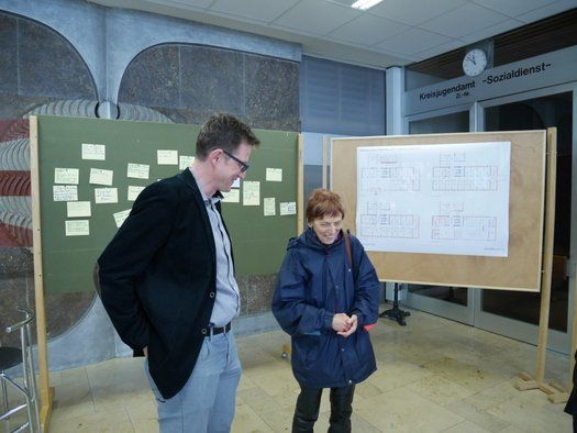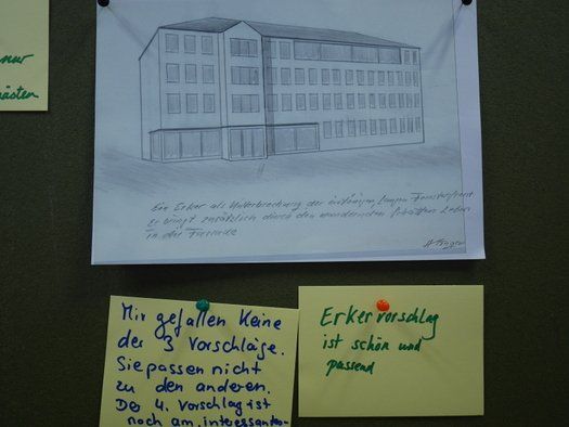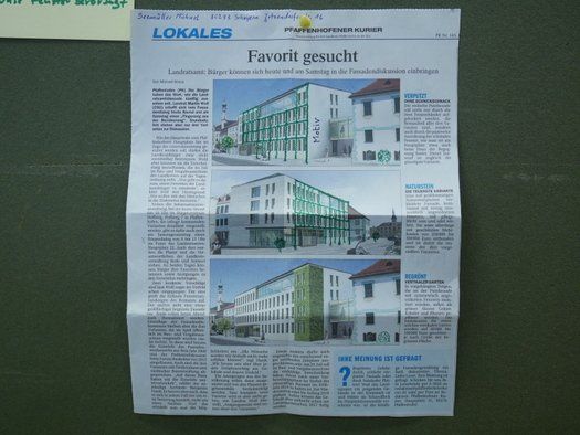 Zu einer Art Bürgerbefragung zur Gestaltung der neuen Fassade hatte das Landratsamt Pfaffenhofen am Samstagvormittag geladen. Viele neugierige Pfaffenhofener sind der Einladung gefolgt und hatten, wie das Urgestein Herman Singer, sogar eine eigene Version mit Erker, mitgebracht.