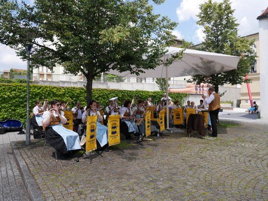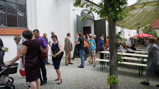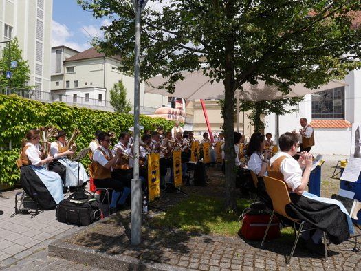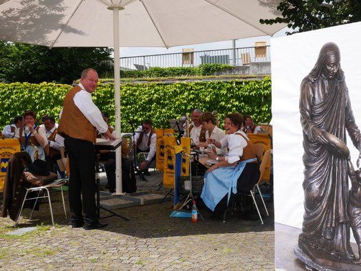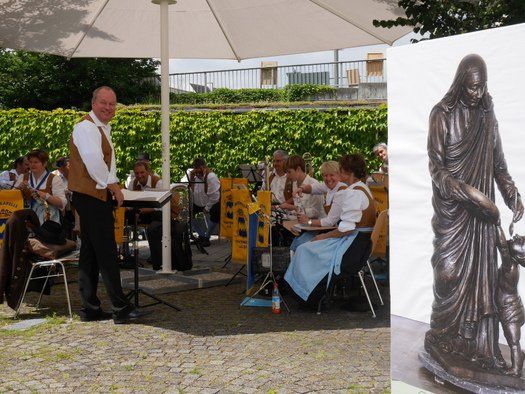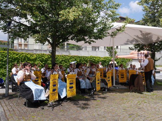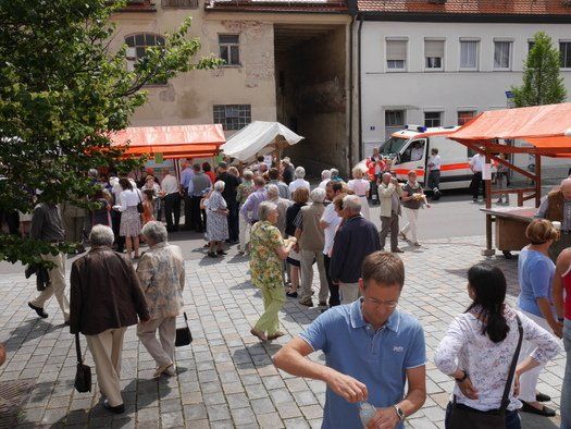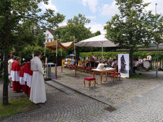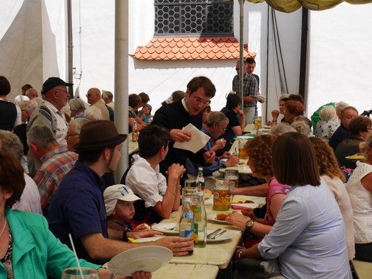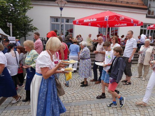 Nachdem Stadtpfarrer Peter Wagner mit seinen Gläubigen und lautstarker Unterstützung der Stadtkapelle die feierliche Sonntagsmesse unter freiem Himmel zelebriert hatte, ging es an die weltlichen Genüsse.
