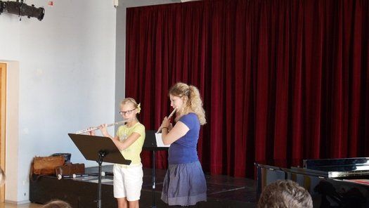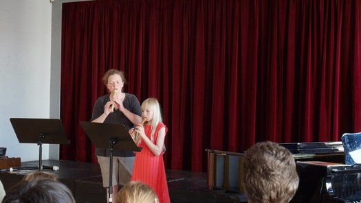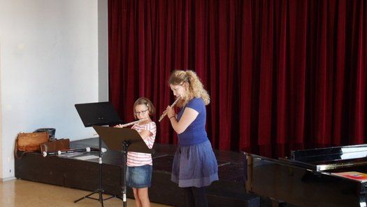 Regina Chalupper (Flöte,Blockföte) und Barbara Sandt (Klavier) nahmen die Prüfung bei Naomi Hirsch (Querflöte), Helene Köster (Sopranblockflöte) und Anna Pohl (Sopranblockföte) ab. Alle Prüflinge bestanden, nach hervorragendem Vorspiel, mit „ausgezeichnet“.