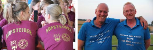Das Sportheim des FC Gerolsbach war an diesem heißen Sommerabend Treffpunkt für alle, die sich dem Umfeld der U17 Juniorinnen verschrieben haben. Es galt schließlich, einen würdigen Abschluss für die erfolgreichste Saison der Sportlerinnen zu feiern. Die Trainer dankten so auch besonders ihren Spielerinnen für deren unermüdlichen Einsatz sowie den Eltern für die über die gesamte Saison hinweg nie nachlassende Unterstützung. "A Real Man Coaches Girls" stand auf den Trainer-Shirts zu lesen, der Grund für diese Feststellung bleibt aber das Geheimnis von Heiner Bosse und Gerhard Jahnke. Nur: wenn die Aussage stimmt, dann haben die Coaches heuer ihr Meisterstück gemacht!