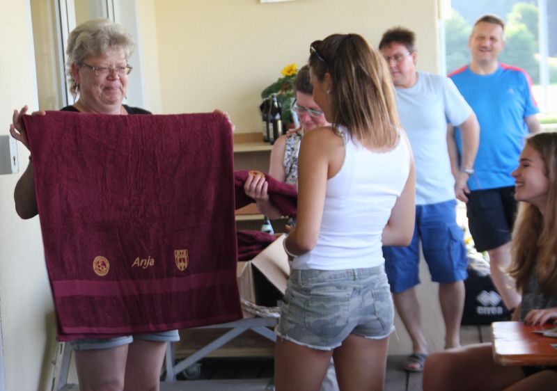 Die Elternschaft ist über die Jahre hinweg zu einer ebenfalls verschworenen Gemeinschaft geworden. Fahrten zu Auswärtsspielen, Siegestaumel nach erfolgreichen und Niedergeschlagenheit nach - zugegebenermaßen äußerst seltenen - Rückschlägen, das schweißt zusammen. Aus Mannschaftskasse und Spenden war das Budget derart angestiegen, dass die gesamte Saisonabschlussfeier finanziert war und auch für Geschenke an Trainer und Spielerinnen noch etwas übrig blieb. Aber auch die Spielerinnen wussten, wem sie Anerkennung zukommen lassen sollten: jede Mami und jeder Papi erhielt ein kleines Dankeschön-Geschenk; auch die Ehepartnerinnen der Trainer freuten sich über einen schönen Blumenstrauß, der zumindest ein wenig für die vielen Abwesenheiten von daheim entschädigte.