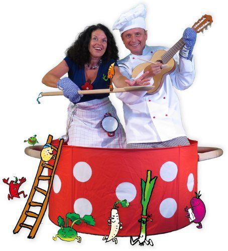 "Wir wollen alle in die Suppe", ist die Einladung an alle Kinder in die phantastische Sternschnuppe Liederküche. Aus einem großen Liederkochtopf angeln sie zusammen mit dem Publikum musikalische Leckerbissen. Raus kommen ein Quark, der unsterblich in eine Erdbeere verliebt ist, Nina, die nur Nudeln mag und das verrückte Gemüse, das freiwillig in den Suppentopf-Pool springt. All das serviert das Künstler-Duo mit einer fein abgestimmten Mischung aus verschmitztem Witz und ausgelassener Spielfreude, die Eltern wie Kindern so viel Freude macht und typisch ist für alle Sternschnuppe Produktionen. Ja und wie immer ist auch das Publikum mitten drin dabei. An die Löffel fertig los! Es darf mit gekocht, gerührt, geklopft und natürlich auch mit gesungen werden. Und wenn die Papas in der Sternschnuppe-Bühnen-Küche am Topfophon brillieren, dann brodelt die Suppe!