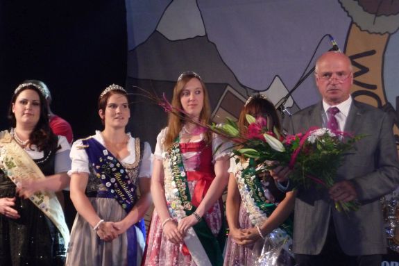 Waren es im letzten Jahr noch ganze sechs Kandidatinnen, so musste man sich heuer mit nur zwei zufrieden geben. Gegeneinander angetreten sind Sabine Schalk (19) aus Elsendorf und Tessina Wassereck (23) aus Mainburg. Sie mussten sich in einem Wissensquiz den Fragen der 11-köpfigen Jury stellen. Zu dieser gesellten sich lokale Größen aus Politik, Handel und Wirtschaft wie z.B. die Landtagsabgeordnete Johanna Werner-Muggendorfer oder auch der neugewählte Hopfenpflanzerpräsident Adolf Schapfl. Am Ende waren alle der einhelligen Meinung, dass Sabine Schalk die Nachfolge von Anna Baum antreten soll. „Ich freue mich total auf die bevorstehende Zeit und darauf, dass ich unser schönes Mainburg und das beste Bier der Welt vertreten darf“. Die scheidende Königin Anna Baum verabschiedete sich mit einem letzten „Bier Unser“ humorvoll vom Publikum und setzte Sabine Schalk, für die ein Kindheitstraum in Erfüllung gegangen war, die Krone auf.