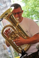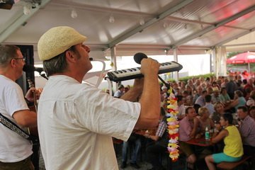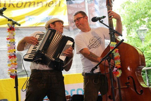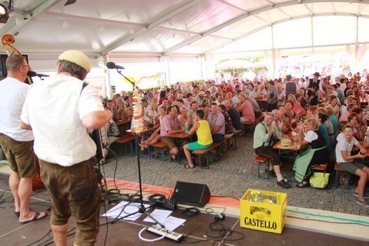 Auch am letzten Tag war noch einmal Vieles geboten. Von der klassischen Volksmusik, über bayerisches, „saufreches“ Kabarett, bis hin zur Avantgarde – klassische Elemente mit neuen Einflüssen. Die Mischung macht's! „Es war eine wirklich tolle Stimmung“, erklärt Ritsch Ermeier. In gewohnt frecher Manier hatte er zusammen mit Walter Zinkl das Publikum schnell in der Tasche. Da ist es kaum verwunderlich, dass die beiden gleich auch noch zum „Stresstest“ ausholten. Nein, keine Atomkraftwerke, Banken oder Politiker, die in der musikalischen Satire ohnehin ihr Fett weg bekamen, sondern das Auer Publikum nahmen sie genauer unter die Lupe. „Schau ma mal ob's ihr den besteht“. Ausgiebig wurde zu bayerischen Melodien geschunkelt und geklatscht, nur dass man auf den Bänken auch noch einen Zwiefachen tanzte, dazu ließ sich das Publikum dann doch nicht überreden. Man genoss bei den sommerlichen Temperaturen einfach ein kühles Bier und die Show.