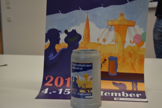 Damit die Region weiß, dass das Volksfest wieder ansteht, hat Graphiker Gottfried Müller das neue Plakat entworfen, das auch Motiv für den Festkrug ist, der in limitierter Auflage von 100 Stück produziert wurde und von der Stadt zum Selbstkostenpreis von 22 Euro verkauft wird.
