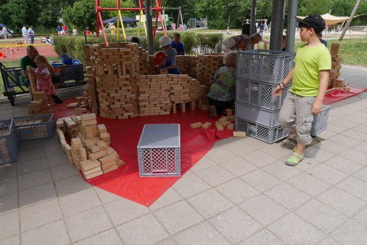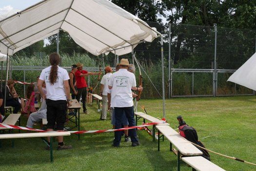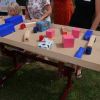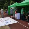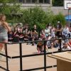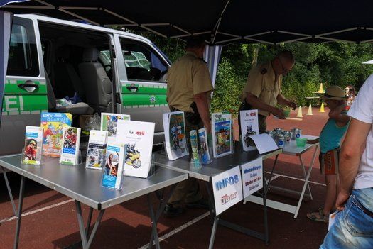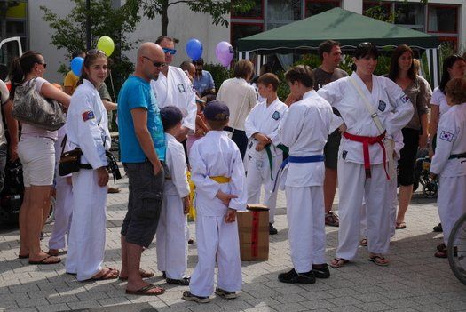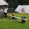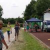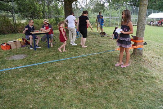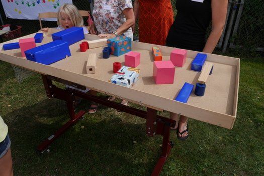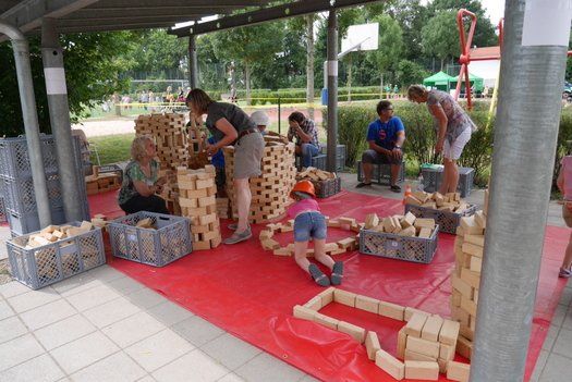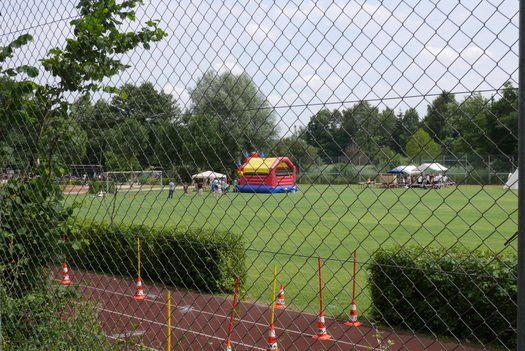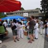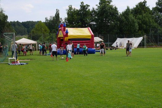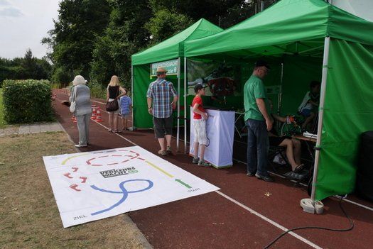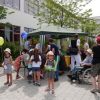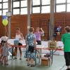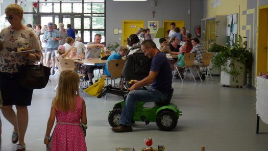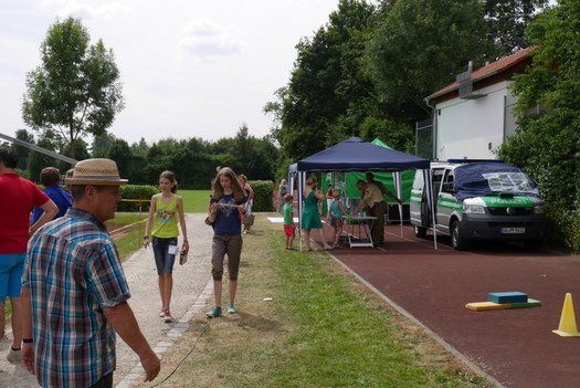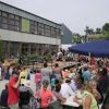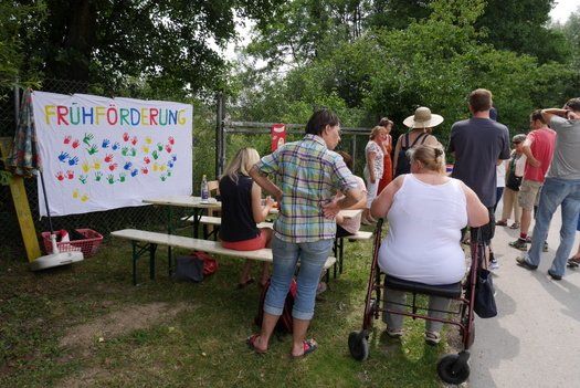 Im Garten und Sportpark war wieder die Kinder-Rally im Gange, bei der auf vielen unterschiedlichsten Stationen Stempel auf dem Teilnahmeschein gesammelt wurden. Die Verkehrswacht mit Polizeiunterstützung residierte neben der Hüpfburg und den Bogenschützen. Hasen übten Hochsprung und kleine Baumeister stapelten im Schatten Holzklötze zu ganzen Städten. Die Kübelspritze als Dosenturmzerstörer oder blind über eine Leiter, die Kinderschar konnte ihre ganze Geschicklichkeit zeigen. „Mitnehmsel“ aus der Kreativwerkstatt für die Oma zum Geburtstag, oder doch lieber ein möglicher Gewinn beim Luftballonwettbewerb. Beschäftigung an jeder Ecke, die drei Schuleinrichtungen hatten wieder alle Register gezogen. Dass so ganz nebenbei das große Lied der Inklusion gespielt und praktiziert wurde, fällt da gar nicht mehr auf.