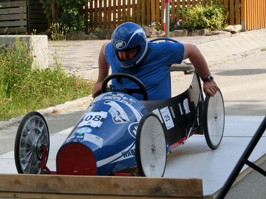 Sieger wurde, wie in den beiden Jahren vorher, Nikolaus Wagenstetter aus Ebersberg. Der 66 jährige, früher war er Rennfahrer bei BMW, arbeitete mit allen Tricks, schob schon beim Start kräftig an und legte sich windschnittig in sein Fahrzeug. Auf den 2. Platz kam ganz knapp Leonhard Oswald, auf Rang 3 Rudolf Maierhofer. Obwohl es in einer Kurve ein Team an die Reifen der Seitenbegrenzung schleuderte und sie mit verbeultem Fahrzeug zum Stehen kamen, gab es von den Männern des Roten Kreuzes keine Verletzten zu versorgen. Ein kurzer Gewitterschauer sorgte für eine Zwangspause, bevor die 2 Runden des Rennens beendet werden konnten.