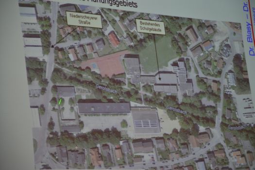 Dass die geplante neue Grund- und Mittelschule keinen zusätzlichen Hochwasserschutz für die Anlieger bietet, war für diesen Personenkreis die wenig erfreuliche Information beim Bürgergespräch, zu dem Bürgermeister Thomas Herker Schuleltern, Anlieger und Interessierte eingeladen hatte. Der Baugrund wird aufgeschüttet und zum Gerolsbach hin mit einer Mauer abgeschirmt, doch die Hochwassersituation wird sich dadurch nur minimal positiv verändern.