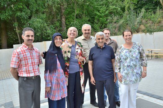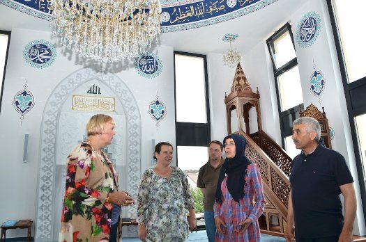 Erdem nahm die Gelegenheit wahr und dankte den Pfaffenhofenern für ihre positive Einstellung zu diesem „Ort der Begegnung und Integration“. Es gebe hier einen „tollen Zusammenhalt.“ Auch viele Schulklassen hätten die Moschee bereits besucht: „Sogar aus der Landeshauptstadt München sind sie schon gekommen.“ Imam Mustafa Aktepe bemerkte, dass er sich in der Kreisstadt „wie zu Hause in der Türkei“ fühle, jedoch leider im September, nach zwei Jahren, wieder zurück in die Türkei müsse, um Platz für einen neuen Imam zu machen. „Die Stadt kann man für diese schöne Moschee nur beglückwünschen“, begeisterte sich Roth, die zu diesem Termin aus ihrem Augsburger Wahlkreis gekommen war. Der Glaube spiele ja in Bayern eine große Rolle, von daher gehöre auch der Islam dazu. Zu einer gelungenen Einbürgerung gehöre auch das Bestattungswesen, meinte Roth und stellte deshalb die Frage, ob denn die Pfaffenhofener Friedhofsordnung darauf Rücksicht nehme. Erdem erklärte dazu, dass es häufig der Wunsch der Verstorbenen war, etwa in der Türkei beerdigt zu werden. Doch habe es bereits drei Bestattungen mit Hilfe von Leinentüchern in Pfaffenhofen gegeben. Am Ende entschloss sich die Bundestags-Vizepräsidentin angesichts der noch unfertigen Außenanlage zur Spende eines Rosenbusches. Der musste dann allerdings noch kurzerhand besorgt werden.