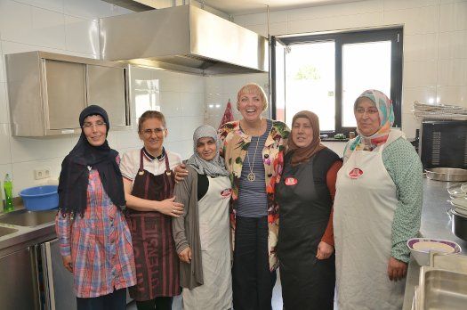 Die schlichte Eleganz des Gebetshauses hat Roth sichtlich beeindruckt. Als „sehr gut“ befand die Grünen-Politikerin, den großzügigen Lichteinfall. Doch mit ihrem Besuch der Pfaffenhofener Moschee wolle sie dem Land Türkei auch Dank sagen für die Aufnahme von zwei Millionen Flüchtlingen, so Roth am Anfang ihrer Besichtigungstour. Aysel Erdem führte die kleine Gruppe, der neben Mitgliedern der islamischen Gemeinde unter anderem mit Kerstin Schnapp und Norbert Ettenhuber vom hiesigen Grünen-Kreisvorstand angehörten, durch die Räume. Ausnahmsweise durften alle männlichen Gäste auch in die große Küche, die ansonsten nur den Frauen vorbehalten ist.