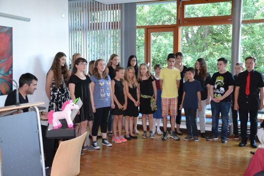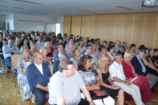 Die Ausstellung wurde eröffnet von Josef Lang, dem Leiter des Finanzamtes, der den Künstlerinnen und Künstlern, der Leiterin des VHS-Töpferkurses Katalin Bereczki-Kossack und ihren Schülern, Barbara Hantel-Gaugler mit ihren Schülern, Rita Mester mit ihren Schmuckstücken sowie den Kunstlehrern des Schyrengymnasiums und ihren Schülern für ihre kreativen Arbeiten dankte. Sie würden mit ihren Arbeiten das Gebäude beleben, in dem sonst nur Akten und Zahlen verwaltet würden. Dietmar Boshof als Leiter des Schyrengymnasiums hob in seiner Begrüßung hervor, dass Kunst und Musik einen hohen Stellenwert in seiner Schule einnehmen würden. Der Schulchor der Unterstufe, der die Eröffnung unter Leitung von Julian Oswald musikalisch umrahmte, sei auch ein Zeichen dafür. Boshof betonte, dass es für seine Schule eine Ehre sei, im Pfaffenhofener Kulturleben eine Rolle zu spielen. Michael Hagen als Vertreter der Volkshochschule dankte Katalin Bereczki-Kossack für ihre 25-jährige Tätigkeit als Kunstlehrerin an der VHS, das sei schon etwas Besonderes.