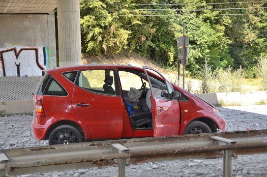 Nachdem der Fahrer eines Tiefladers mit seinem aufgeladenen Bagger die Brücke nahe der Zierlmühle streifte und dabei erheblich demolierte, wurden die Insassen eines nachfolgenden Pkw durch die Beschädigung ihres Wagens mit Trümmerteilen wie durch ein Wunder nur leicht verletzt.