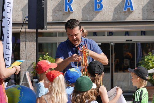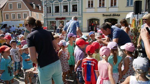 Bei der Aktion Kindermeilen für den Klimaschutz haben die Pfaffenhofener Kindertagesstätten mit rund 550 Beteiligten insgesamt 3479 Kindermeilen zusammengetragen. Mit einem großen Fest vor dem historischen Rathaus, bei dem der Zauberer Pierre Breno Bürgermeister Thomas Herker höchstpersönlich ins Rotieren gebracht hat, wurde abgerechnet.