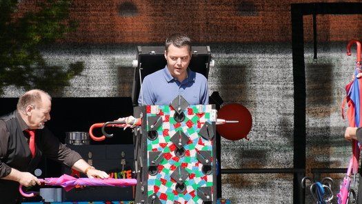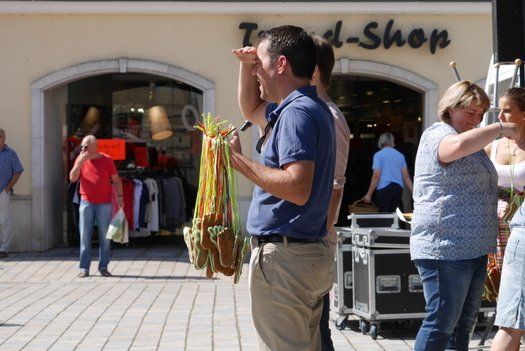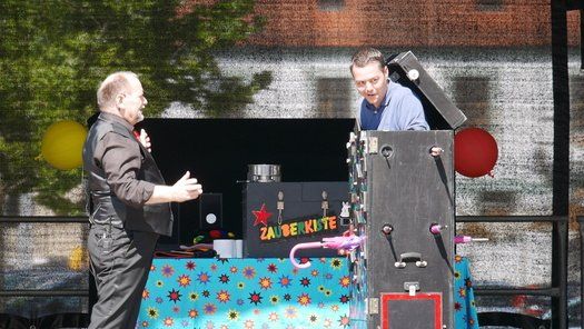 Mit einer großen Zaubervorführung von Pierre Breno, dem Held seiner Kindertage, wie Thomas Herker gestand, endete die rührige Großveranstaltung vor dem historischen Rathaus. Begeisterte Kinder und Eltern, das Stadtoberhaupt von Regenschirmen durchbohrt, das Klima auf dem Weg zur Besserung, was will man mehr in der lebenswertesten Stadt der Welt.