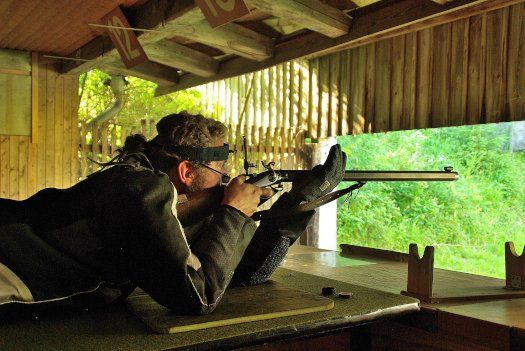Geschossen wurde auf dem Gelände von Freischütz Langenbruck beispielsweise mit Revolver, Perkussionspistole, Unterhebelrepetierer oder auch historischen Rollingblockgewehren, zumeist über Kimme und Korn, wie es sich gehört. Denn Zielfernrohre waren zu damaligen Zeiten ja auch nicht in Gebrauch.