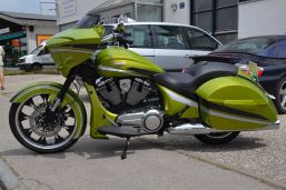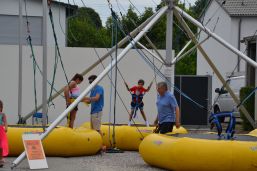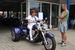 Oder aber die Kinder in der Hüpfburg beim SEAT-Autohaus Bauer rumtoben zu lassen, sich nebenan eine Kleinigkeit zum Essen holen und unten im Holzlager der Zimmerei Roßner einen preisgünstigen Hugo oder Spritz trinken. Bei der Energie Südbayern konnten nicht nur die Kinder am Glücksrad drehen, und für die älteren Besucher standen zum Probefahren auch Elektroräder bereit. Und für Gartenfreunde und Landwirte waren bei Firma Endress Rasen- und andere Kleintraktoren zum Anschauen, leider nicht zum Probefahren. Die heißesten Gefährte standen natürlich bei Firma Roel, die Trikes, die aussehen wie ein tolles Motorrad, sich aber fahren lassen wie ein Auto – und dafür braucht man auch keinen Motorradführerschein, denn zur Fahrt reicht der normale PKW-Führerschein. Wie zu sehen war, sind auch Frauen von den Maschinen begeistert.