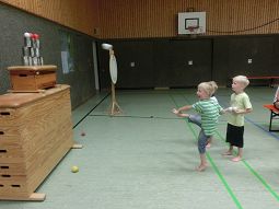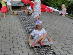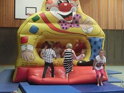 Die Kinder hatten wieder volles Programm: für die Älteren stand eine Laserschießanlage in der Mehrzweckhalle bereit, dazu eine Hüpfburg und Büchsenwerfen, die Kleinen hatten eine Riesengaudi mit einer Rollenbahn im Freien, auf der sie mit einfachen Brettern bergabrutschen konnten.