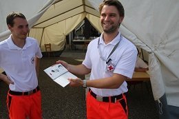 Im Anschluss daran gab es für viele Flüchtlinge wohl die erste warme Mahlzeit seit Wochen. „Mit dem ersten Bus erreichten uns viele Familien aus Syrien“ erklärt Karl Huber. Aber auch Afrikaner und Albaner kamen nach Pfaffenhofen. „Für uns ist dabei jeder Bus eine Wundertüte“, fügt Huber weiter an, denn nähere Auskünfte über die Herkunft erfahren die Helfer auch erst dann, wenn sich die Türen der Busse öffnen. „Es ist wichtig, dass die Menschen erst einmal an- und vor allem zur Ruhe kommen“, so Steven Schwetje, gemeinsam mit sechs Helfern vom Roten Kreuz unterstützte er die drei Ärzte bei der Aufnahme. Ein Tütchen Gummibären aber auch ein Lächeln, das Engagement und die Hilfsbereitschaft gerade der Ehrenamtlichen ist enorm. „Ihnen gilt mein besonderer Dank“, so Landrat Martin Wolf, denn ohne sie wäre diese Herausforderung wohl kaum zu bewältigen.