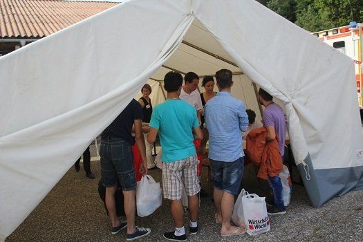 „Es ist für uns eine große Herausforderung“, so Landrat Marin Wolf, der sich als einer der ersten ein Bild von der Lage in der Erstaufnahmeeinrichtung machte. Neben zahlreichen ehrenamtlichen Helfern der Caritas und dem Roten Kreuz waren auch rund 30 Mitarbeiter des Landratsamtes vor Ort. „Die Flüchtlinge werden zunächst in einem Erstscreening medizinisch untersucht, dann folgt die Registrierung durch Mitarbeiter des Sozial- und Ausländeramtes“, erklärt Dr. Sonja Schweitzer.