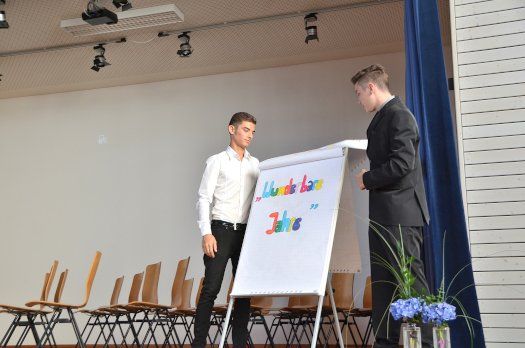 Die Sprecher der Schüler machten deutlich, dass es in der vergangene Zeit „lange und manchmal auch harte Jahre“ gewesen seien in denen sie „viel Positives aber manchmal auch Negatives“ erlebt hätten. Gedankt wurde den Lehrer für die pädagogische Begleitung mit vielen Blumengeschenken aber auch ebenso vielen anerkennenden Worten. Die Vorsitzende des Elternbeirates Susanne Mükschi-Küper sagte in ihrer Rede lebenserfahren: „Auch wenn ihr es das nicht vorstellen könnt, ihr werdet euch nach dieser Zeit zurücksehen.“ Mit Szenen aus dem Klassenalltag begeisterte die 9a dann das Publikum ehe es ans opulente Buffet ging.