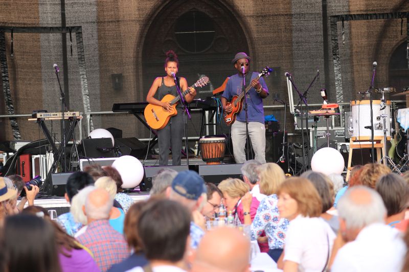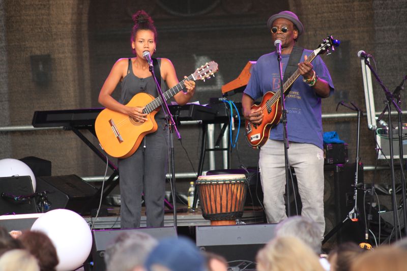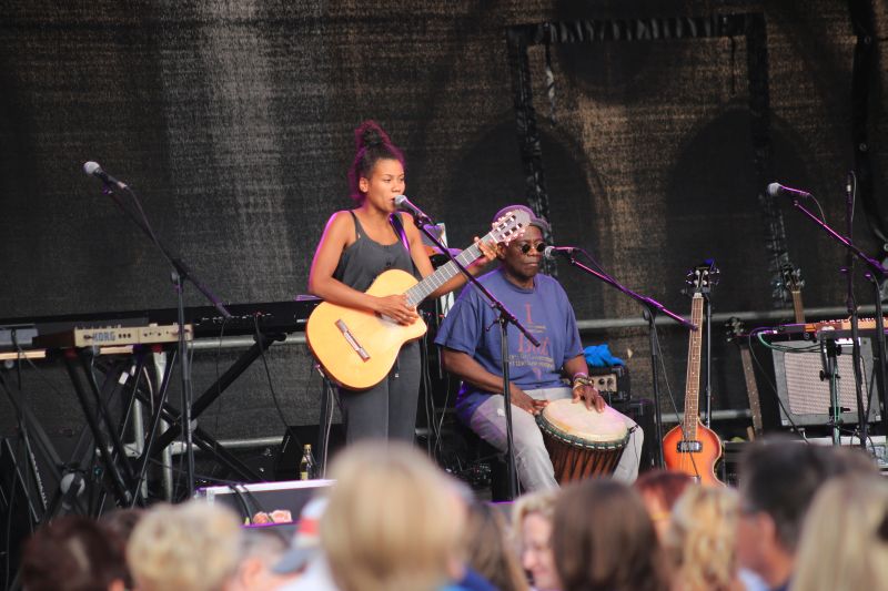 Ami Warning machte den Anfang bei diesem Pfaffenhofener Sonntagabend-Open Air. Als Songwriterin angekündigt kann sie jedoch von Beginn an ihre karibischen Wurzeln nicht verbergen. Bob Marley Reggae-Klassiker oder ihre mit karibischen Rhythmen unterlegte Version des Bill Withers-Hits "Ain't No Sunshine" werden eingerahmt von wunderschönen und gefühlvollen Eigenkompositionen, durchwegs begleitet von akustischer oder elektrischer Gitarre sowie Bongos. Und dazu dieser Gesang: von dieser eher zierlichen jungen Frau erwartet man eine solch rauchige, manchmal sogar soulig wirkende Stimme gewiss nicht von vornherein.