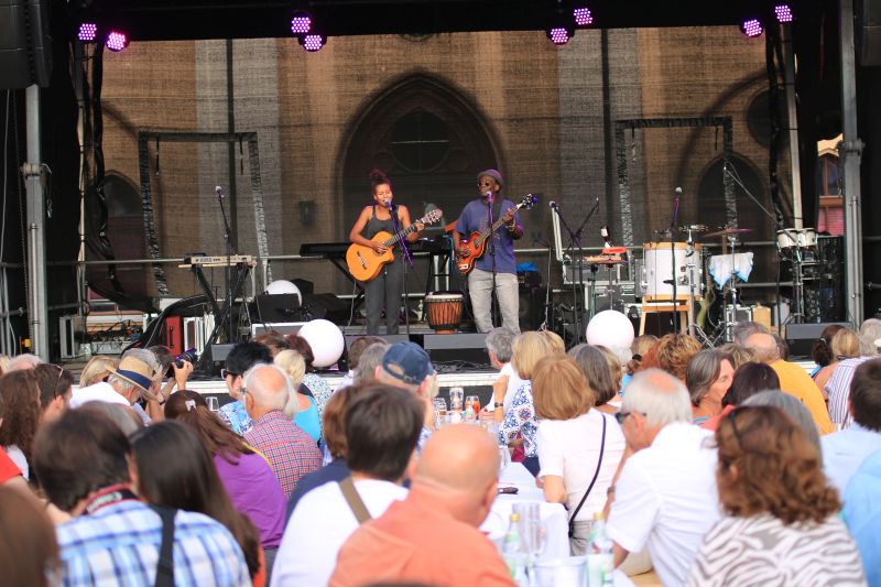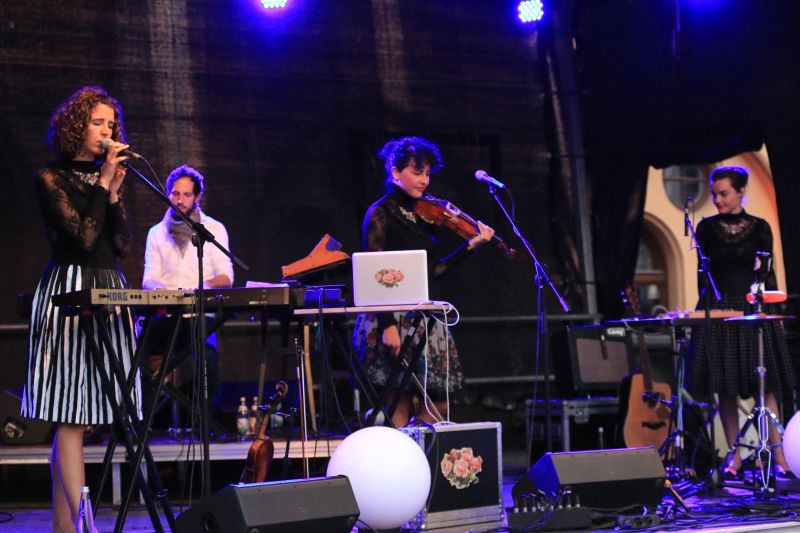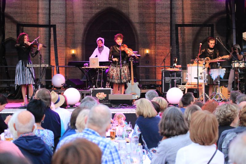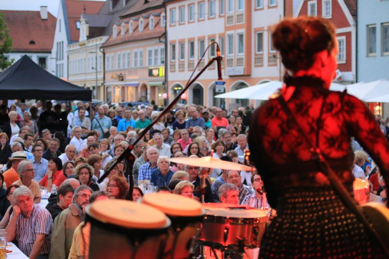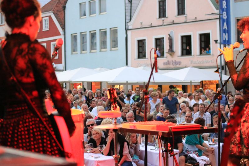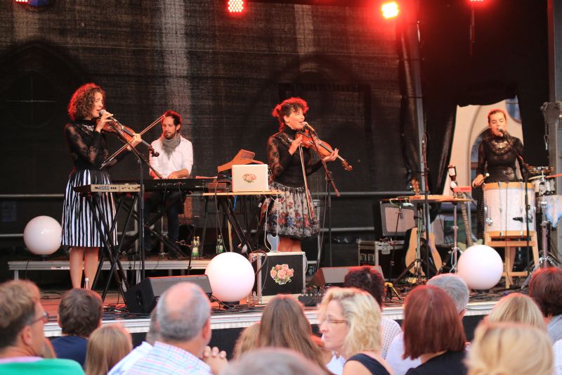 Viele der Besucher am Sonntagabend auf dem Pfaffenhofener Hauptplatz wussten nicht wirklich, was sie musikalisch erwarten würde. Von Steffen Kopetzky als "Quellnymphen" angekündigt hatten die Ganes-Stücke von Anfang an etwas Mystisches und Geheimnisvolles in sich. Schöne Musik, teilweise eine etwas träumerisch dunkle Atmosphäre verbreitend, mit Texten, die ganz sicher poetisch und phantasievoll sind, jedoch sich dem Publikum aus verständlichen Gründen nicht erschlossen haben. In der Konsequenz lichteten sich die Plätze an den Tischen und in den Stehbereichen so nach einer guten Stunde zusehends. Was die Ungeduldigen unter den Zuschauern jedoch verpasst haben: Ganes kann auch anders! In einem "Finale furioso" rissen sie das Publikum mit - für sie - vollkommen atypischer Musik wie "Bang Bang" oder "Bun Chaka Le" doch noch von ihren Sitzen und sorgten für einen begeisternden Abschluss.