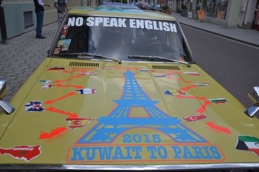 Die Wegstrecke und ihr Motto hatten sie jeweils malerisch auf ihren Autos verewigt. Ihr Weg führte sie vom Emirat Kuwait über die Türkei, Bulgarien, Rumänien, Ungarn, Polen, Slowakei, Tschechien, Österreich nach Deutschland. Hier machten sie dann Station in Pfaffenhofen, um einen Freund zu besuchen und die Allianz Arena in München zu besichtigen - für sie der wahre Fußball-Tempel. Später geht es weiter über die Schweiz nach Frankreich, Paris, dann über England nach Spanien und per Schiff nach Marokko und später wieder zurück nach Kuwait – ein wahrer Zick-Zack-Kurs durch Europa. Aber ihnen macht es Spaß nach dem Motto „No Money, no Funny“. Obwohl nicht alle Teilnehmer Englisch sprechen können („No speak English“), hatten sie keinerlei Verständigungsschwierigkeiten und keinerlei große Probleme an den Grenzen und sie wurden auch überall freundlich aufgenommen. Was ihnen aber auf der Reise auffiel, waren die deutlich unterschiedlichen Benzinpreise in den jeweiligen Staaten – und Deutschland war für die am teuersten. Wir wünschen ihnen eine weiterhin gefahrlose Fahrt und eine gute Heimkehr.