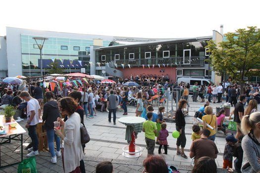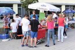 Schon am Nachmittag wuselt es im Schulhaus wie im Schwimmbad an den heißesten Tagen – Bierbänke aufstellen, Tische aus den Zimmern tragen, Stände aufbauen, bitte mal sammeln wer macht was. Manchmal entscheidet sich erst einen Tag vorher, welche Art Stand eine Klasse aufbaut. Waffeln backen wäre doch was – die Jungs wollen lieber Geschicklichkeitsspiele – machen wir beides, und sehen, dass die Mädchen doch Recht hatten. Da kann man als Ehemaliger schon nostalgisch werden, wenn man sieht, dass sich die üblichen Abläufe auch nach Jahren nicht geändert haben. Es gibt immer noch den Getränkestand vor den Musikräumen und Parkours vorm Eingang; Schüler, die sich vor ihrer Schicht am Stand drücken und andere, die gar nicht mehr wegwollen.