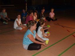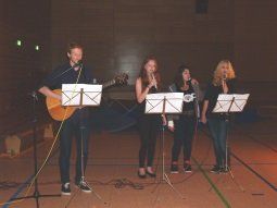 Man kann schon sagen, der Elternbeirat, Schüler und Lehrer haben sich ein echt tolles und umfangreiches Abschiedsprogramm einfallen lassen. Auf dem Pausenhof vor der Mittelschule waren Tische und Bänke für die Besucher aufgebaut und es gab Stände vom TSV Au und der Kolpingsfamilie, die Getränke und Essen verkauften. Um Halb vier ging es los mit einem Lebend-Kicker-Turnier, zu dem zahlreiche Mannschaften angemeldet waren. Zwar hatte ein kräftiger Regenguss am Nachmittag die Besucher kurzfristig unters trockene Vordach der Hopfenlandhalle vertrieben, aber anschließend wurde gleich wieder weitergefeiert.