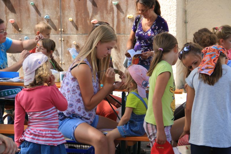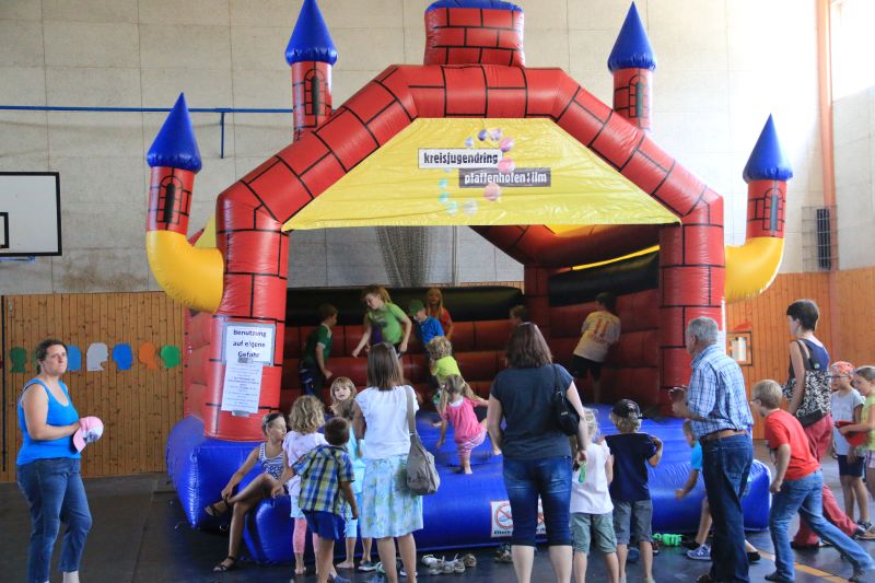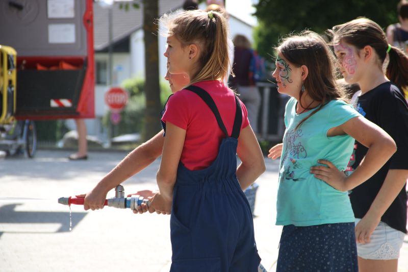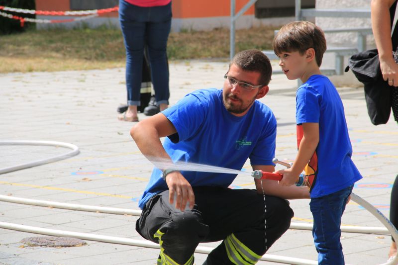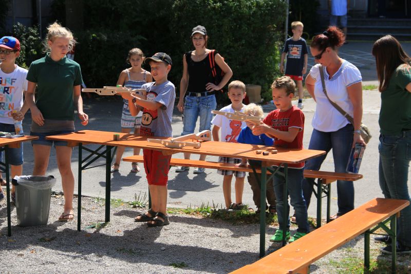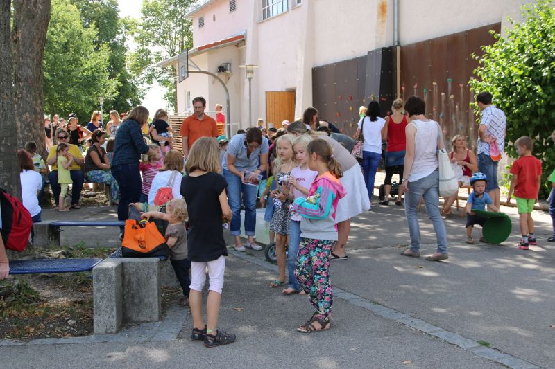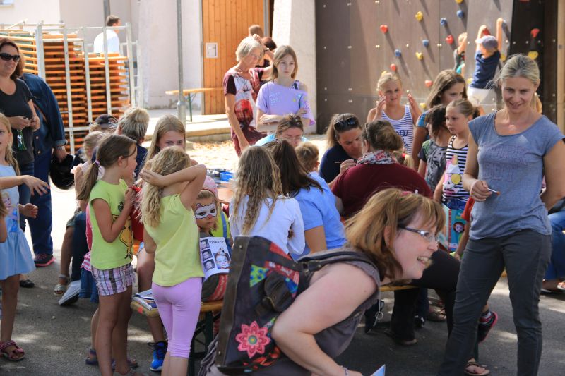 Das war ein Abschluss des Schuljahres, wie es das Schülerherz begehrt. Traumhaftes Wetter, die Aussicht auf 6 Wochen Ferien und ein Rummelplatz des uneingeschränkten Vergnügens rund um die Grundschule. Viele Vereine hatten sich wieder ins Zeug gelegt und bereiteten den Kindern ein abwechslungsreiches Programm. Die Feuerwehr setzte das Wasser in Marsch und die Teilnehmer mussten Tennisbälle auf den aufgebauten Pylonen treffen; beim Schützenverein konnte man ausprobieren, wie es ist, mit der Armbrust zu schießen; die Kreisverkehrswacht Pfaffenhofen hatte einen Radel-Parcours aufgebaut und der Tennisclub seine besten Jugendtrainer zur Nachwuchssichtung abgestellt. Elternbeiräte von Grundschule und den ortsansässigen Kindergärten organisierten Wasserspiele und Hindernislaufen auf Filzplatten sowie ein tolles Kinderschminken. Für das leibliche Wohl sorgte die Frauenunion, die die Essens- und Getränkeausgabe organisierte.