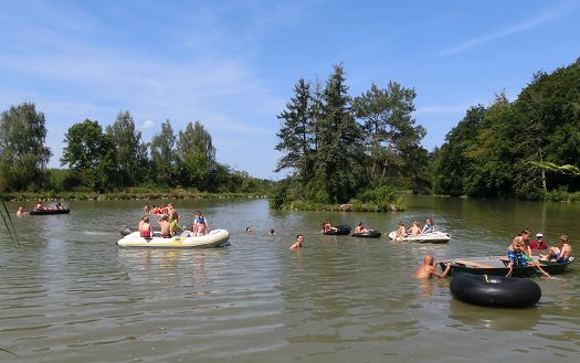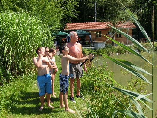 Trotz großer Hitze (über 35 Grad) kamen mit 34 Kindern eher weniger als in den letzten Jahren, was aber der guten Stimmung keinen Abbruch tat. Die Weiher dürfen ja normalerweise nicht zum Baden genutzt werden, einmal im Jahr allerdings ist dort Spiel und Spass im Wasser angesagt. Ob selber paddeln oder im Schlauchboot gezogen werden, für jedes Kind war das Richtige dabei. Diejenigen, die sich fürs Angeln interessierten, konnten unter fachmännischer Anleitung erste Versuche mit der Angel unternehmen oder sich beim Zielfischen beteiligen.