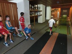 Im Rahmen der Sommerferienspiele trafen sich heute nachmittag 9 Kinder zwischen 8 und 10 Jahren im Gasthof Bergsteffl zum Kegeln auf der hauseigenen Kegelbahn. Eigentlich hatten sich 15 Kinder zu diesem Spielnachmittag angemeldet, aber 6 Kinder gingen bei der großen Hitze doch wohl lieber zum Baden.