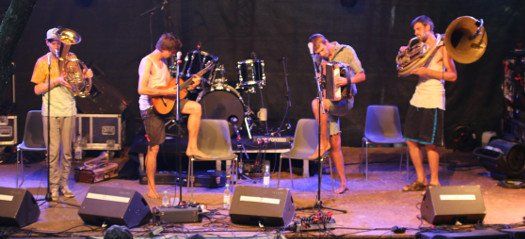 Zwei Tage Programm mit Bands musikalisch unterschiedlichster Stilrichtungen - Samstagnachmittag dabei "freie Bühne" - bietet gewiss für jeden Interessierten etwas. Headliner in diesem Jahr waren dabei Kofelgschroa aus Oberammergau, Vertreter der sogenannten "Neuen Volksmusik", die den Freitagabend auf der großen Bühne gestalteten. Maxi Pongratz (Akkordeon), Michael v. Mücke (Flügelhorn und Gitarre), Martin v. Mücke (Helikontuba) und Matthias Meichelböck (Tenorhorn) hatten keinerlei Anlaufschwierigkeiten oder Berührungsängste, bewiesen von Beginn an, und zwar schon beim Soundcheck, ihre absolute Nähe zum Publikum. Als "Freizeitmusiker mit viel Freizeit" bezeichnen sie sich selber auf ihrer Homepage, ob das mit zunehmendem Erfolg und steigenden Live-Terminen tatsächlich noch so ist, müssen die Musiker selber beurteilen.