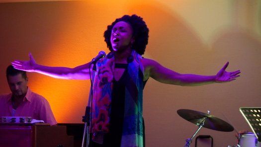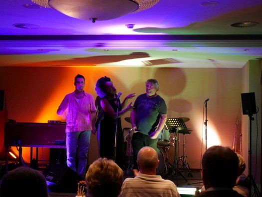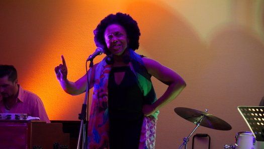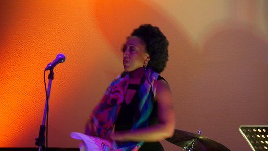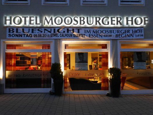 Nach einer kurzen Aufwärmrunde der Band und ebensolcher Vorstellung der Protagonisten, stieg Ethel Calhoun mit No Woman, No Cry in einer sehr emotionalen Version in das Geschehen ein, Bob Marley als Vorspeise, sozusagen. Die Band revanchierte sich mit expressionistischen Solos der besonderen Art. Gelungene Farbenspiele mit dem wechselnden Licht, transformierten den kleinen Saal des Moosburger Hofes in eine klingende Gemäldegalerie.