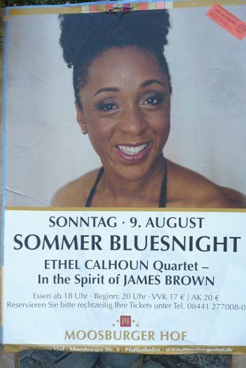Heiß sehr heiß, nicht nur draußen auf der Straße, die singende und tanzende Powerfrau Ethel Calhoun aus New York im Moosburger Hof. Trotz Klimaanlage stieg die Temperatur beim Gastspiel des Ethel Calhoun Quartets spürbar, James Brown ließ grüßen.