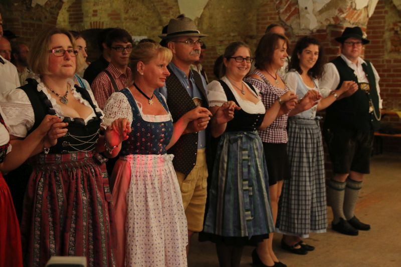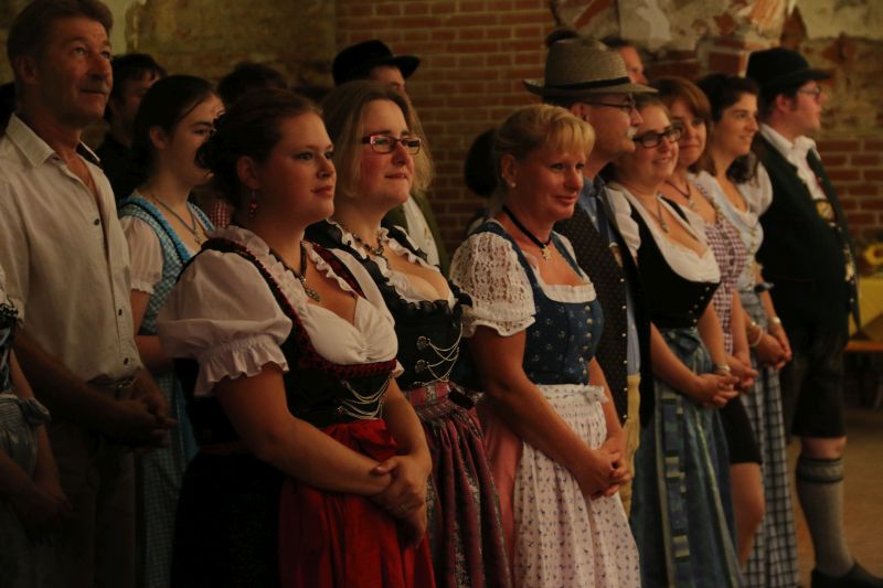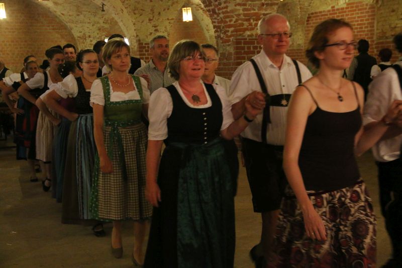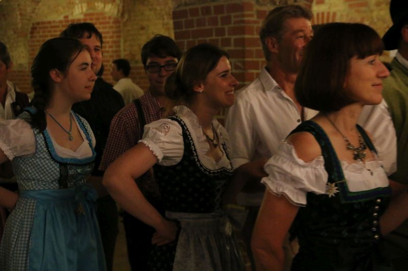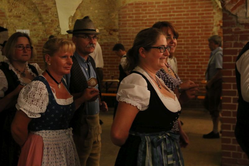 "Des is des Schöne: da kimmst jedes Jahr aufs Neue her und kennst fast alle Leit", freute sich eine etwas zu spät gekommene Teilnehmerin schon, bevor sie das Gewölbe betrat. In der Tat kommen traditionsbewusste Volkstanz-Begeisterte nicht nur aus der näheren Gegend zum Volkstanz am Vorabend des Hopfazupfa-Jahrtags, sondern gemessen an den Autokennzeichen haben sie auch den Weg aus der Neuburg-Schrobenhausener Gegend, aus dem Nachbarlandkreis Dachau oder aus Ingolstadt in den Scheyrer Prielhof gefunden.