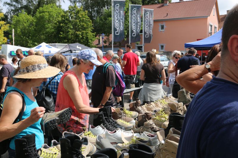 Jeder weiß, dass es oftmals nicht so einfach ist, Kinder für einen Wochenendspaziergang zu bewegen. Nicht so bei einem Ausflug zum Frautag: diese Auswahl an Spielzeug von Sandkastenschaufeln und -eimern über Modell- und Super-Dooper-Baustellenautos bis hin zu einer kompletten Cowboy-Ausrüstung gibt es alles, was das Kinderherz höher schlagen lässt. Neu dieses Jahr: die Firma Lowa hatte ihren Sonderverkaufs-Shop mit Auslaufmodellen und 2.-Wahl-Ware geöffnet und bei Nachlässen von mehr als 50% auf die Ladenpreise gab es schnell eine lange Schlange an der Kasse.