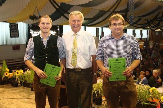 Max Weichenrieder konnte den beiden Landwirtschaftsmeistern Johannes Hagl (li.) und Tobias Rank (re.) zur bestandenen Prüfung gratulieren.