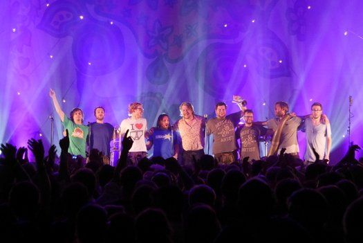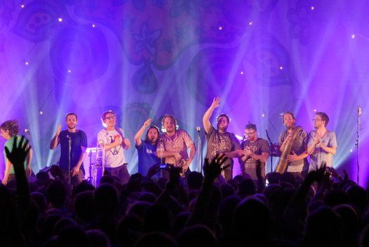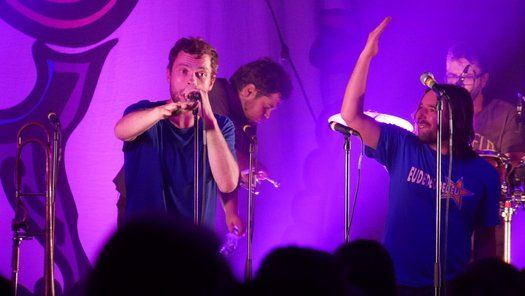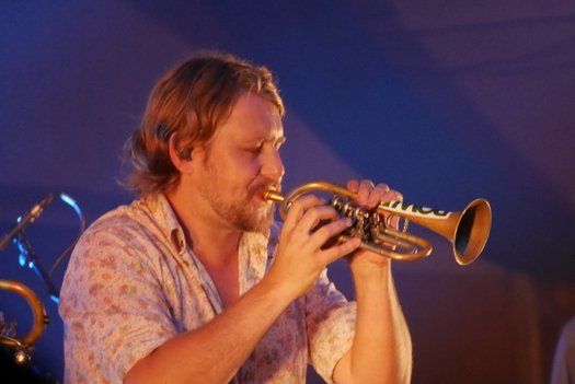 LaBrassBanda ist ehrlich, klar, unkompliziert und kräftig, sie spielen ihre Musik wie Freude die sie damit verbreiten, mit viel Umarmung. Das ist nicht Subkultur, das ist die Zukunft aus den Wurzeln, praktisch die Kraft aus der ersten Trompetenstunde, irgendwo in einer Musikschule auf dem Land. Viele Musiker waren im Publikum, die halbe Stadtkapelle lauschte den erstaunlichen Arrangements, von Posaune, Tuba, Trompete an E-Bass, Gitarre, Schlagzeug und Gesang.