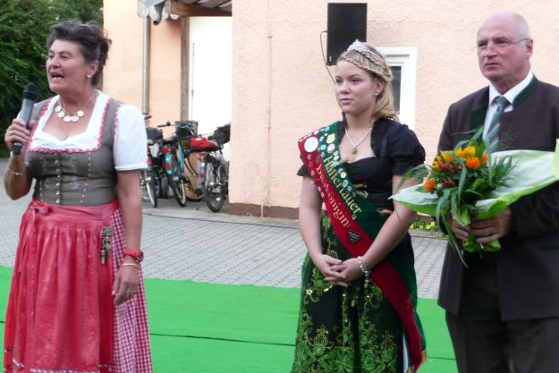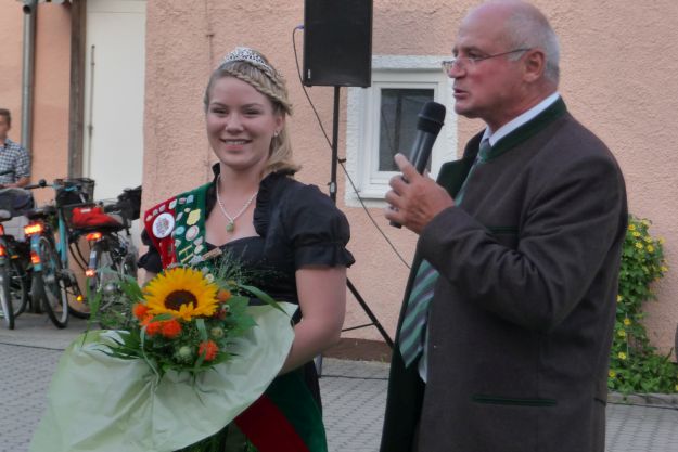 Stadträtin Marianne Huber brachte in ihrer kurzen Begrüßungsansprache ihre Freude über den guten Besuch zum Ausdruck. Bürgermeister Sepp Reiser, dem die ihm kredenzten Weine übrigens vorzüglich schmeckten, durfte einen Blumenstrauß an die Mainburger Bierkönigin, Sabine Schalk überreichen. Wieso es die Bierkönigin auf ein Weinfest zieht? Sabine gab die Erklärung: „Wein und Bier haben den nicht nur einen ähnlichen Gärungsprozess. Die Folgen bei übermäßigem Genuss sind auch dieselben“.
