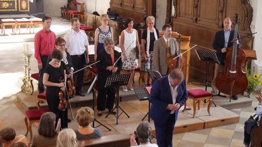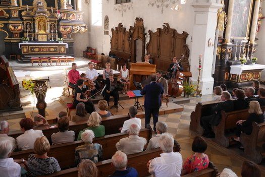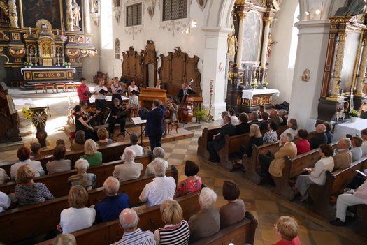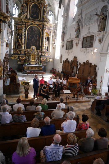 Ein mit vorwiegend heimischen KünstlerInnen und SängerInnen besetztes Ensemble zeigte sich von seiner besten Seite und gestaltete die, für kirchliche Musik ungewöhnlich, vergnügte halbe Stunde. Mozart hatte einfach ein Händchen für Werke, die direkt ins Herz gehen. „Missa brevis“ heißt zu Deutsch „kurze Messe“ und hat verschiedene Bedeutungen. Die Themen dieses Messetyps sind liedhaft und verwenden häufig Volkslieder oder lehnen sich an bekannte Melodien an.