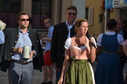 Außerdem stellte er die neue Hallertauer Hopfenkönigin Anna Roßmeier aus Bachappen vor, die überhaupt 2. Hallertauer Hopfenkönigin aus dem Siegelbezirk Pfaffenhofen, die dieses Jahr in Wolnzach gewählt wurde. Die noch amtierende Volksfestkönigin aus Pfaffenhofen, Julia Eichinger aus Scheyern war leicht aufgeregt, weil sie am Montag in zwei Wochen leider ihr Krönchen an eine Nachfolgerin abgeben muss. Aber sie hat im letzten und diesem Jahr sehr viel erlebt und die Zeit genossen, ist weit herumgekommen, so nach Berlin zur Grünen Woche oder in den Bundestag mit dem Abgeordneten Irlstorfer. Außerdem war sie auf vielen Festen vertreten und hat dabei alle möglichen Festköniginnen kennen gelernt wie die Blumen-, Hopfen-, Kartoffel- oder Spargelkönigin. Ihr Arbeitgeber, die Bäckerei Wiesender, kam ihr dabei sehr entgegen, obwohl sie als Filialleiterin in Kirchdorf viel Arbeit hat.
