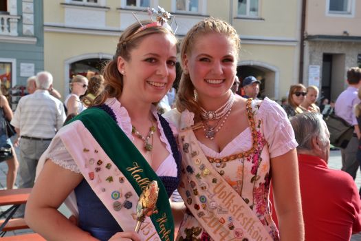 königliche Schönheiten: Hopfenkönigin Anna Roßmeier; Volksfestkönigin Julia Eichinger