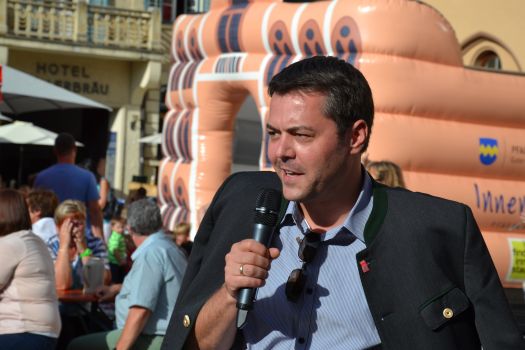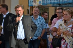 Bürgermeister Thomas Herker (SPD) eröffnete offiziell die Veranstaltung, nachdem sich alle Gäste mit Bier versorgt hatten und übergab das Wort dem Volksfestreferenten des Stadtrates, Richard Fischer, der kurz auf die neuen Attraktionen auf dem Volksfest einging wie die Schiffschaukel oder ein Fahrgeschäft mit einer Geschwindigkeit von 100 km/h und einer Falltiefe von 40 Metern.